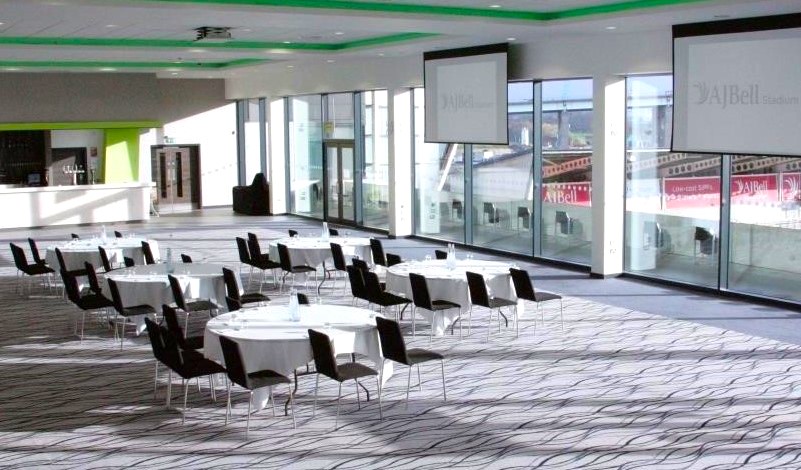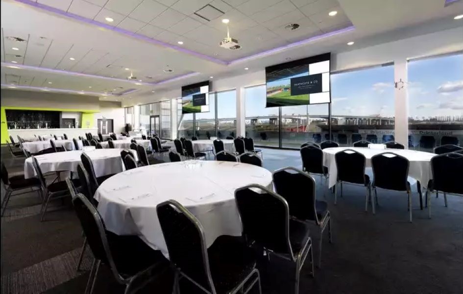 The Barton, Irlam & Cadished Lounges share an amazing view of the pitch and Greater Manchester skyline. They come equipped with an integrated AV system. This includes 2 x drop down projectors, 2 x drop down screens, PA system with handheld microphone, built in speakers and coloured ceiling lights that are customisable to your theme.