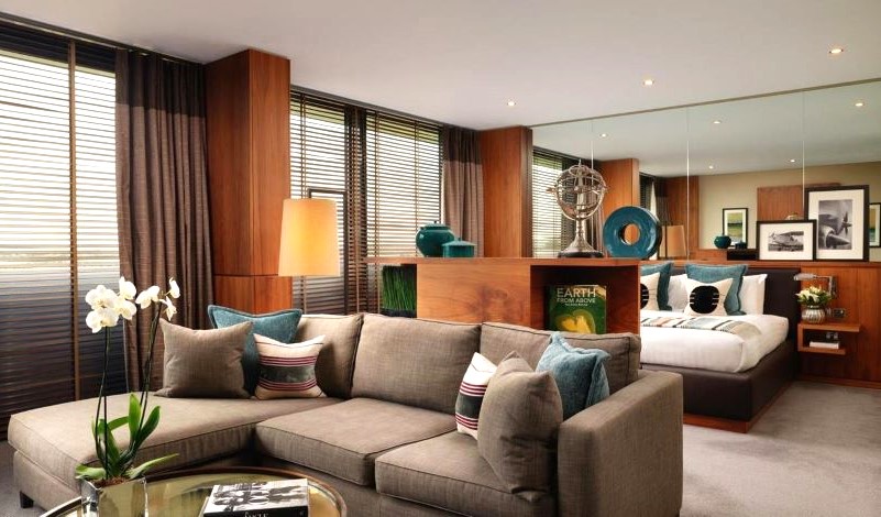 Accommodation. 169 contemporary yet rich and comfortable bedrooms and suites. Interiors include walnut panelling, leather accented furniture and wet rooms with black glass walls, granite vanity tops and chrome finishing. All beds are king size in Aviator Rooms and Aviator Studio hotel rooms, or super king size in the Sky Suites, with crisp Egyptian cotton bed linen and goose down pillows and duvets. Complimentary movies, music library and wifi are included for all guests in every hotel room at Aviator.