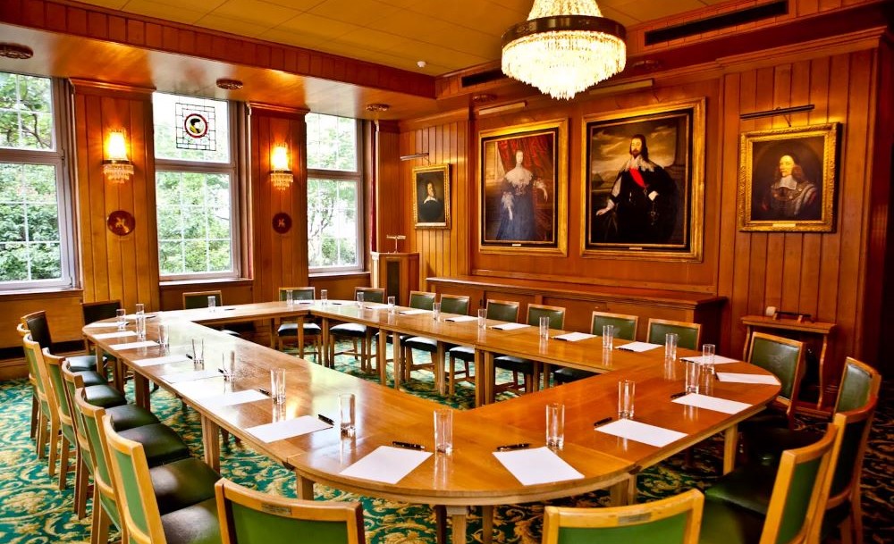 The Court Room is perfectly suited for small-scale lunches, committee meetings, or to serve as a breakout space for The Great Hall. The room boasts leather-topped tables, impressive statuary and stained glass windows, flooding the space with natural light.