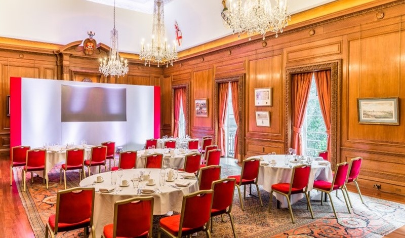 The Court room is a perfect space for luncheons and boardroom style meetings. The room is wood panelled and has a marble fireplace with a Carrara panel by Sir Charles Wheeler PRA. Communicating doors to the Livery Hall form an adaptable space that can be used as an independent meeting space or an extension to the Hall.