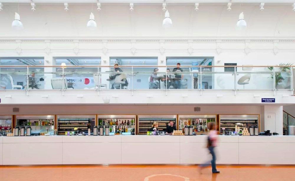 This modern Foyer, with cafe-bar facilities, provides the perfect space for drinks receptions, banqueting, seminars, conference refreshments and exhibitions. The area consists of two purpose built bars on a ground floor and mezzanine level. By day, high ceilings allow plenty of natural daylight whilst LED lighting sets the perfect mood for an evening event. Located adjacent to the Concert Hall and Corn Exchange the Foyer provides the perfect hub for conference registration, receptions, private dinners or exhibitions.