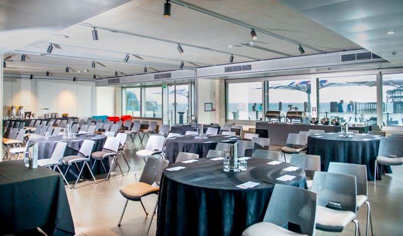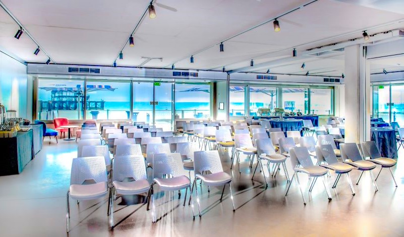 Natural light pours into the Brighton i360 beachfront building through full-height windows. The two largest event rooms, Attenborough and Birch, open out onto private beachfront terraces with fabulous sea views.