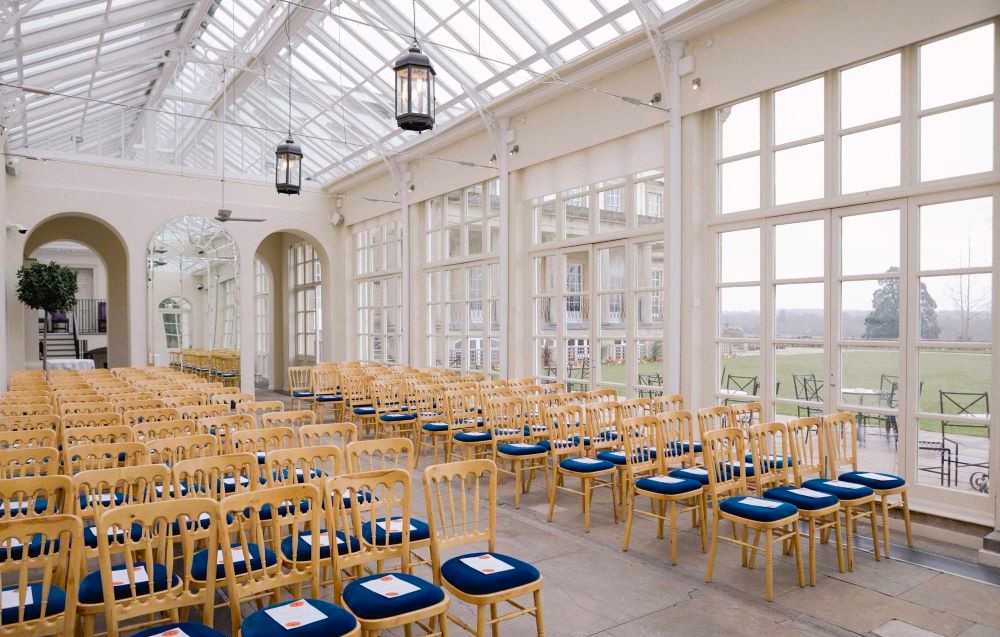 A bright spacious meeting room with original features including a stunning chandelier and beautiful dual aspect overlooking the Orangery lawns and the Oriental terrace.