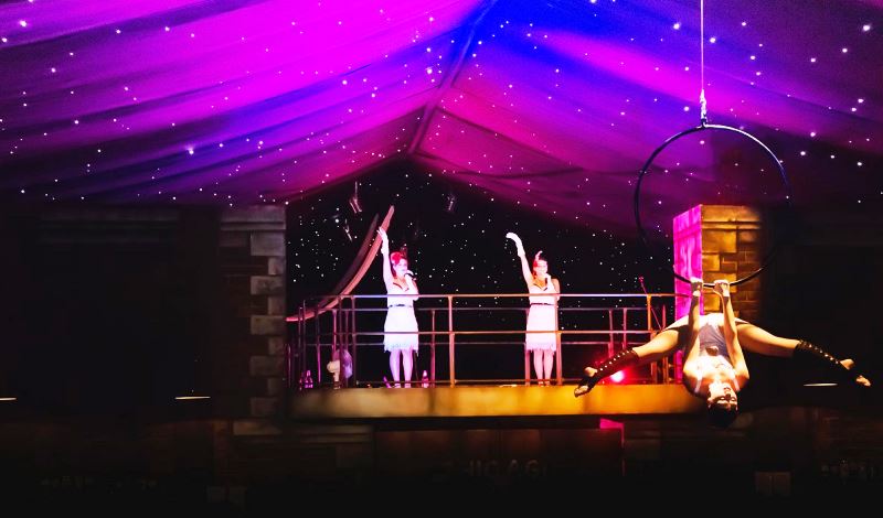 Choose the glitz of the Gatsby bar for a glass of prosecco or a classy cocktail, the vibe here in Milton Keynes is exclusive and exuding glamour. Relax with the laid-back soundtrack and admire the awesome aerial trapeze performances. Alternatively, head into the hot, lively and jumpin’ jazz bar, where the atmosphere is charged and the music is pumping. Grab a beer whilst our Molls and Flappers entertain. Take your seats under one giant, twinkling, star-lit ceiling, as our award-winning caterers serve three courses of delicious festive dining. Each dish is interspersed with dramatic bursts of entertainment from our spectacular cast. With dinner served and the drinks now flowing, prohibition has only just begun…
