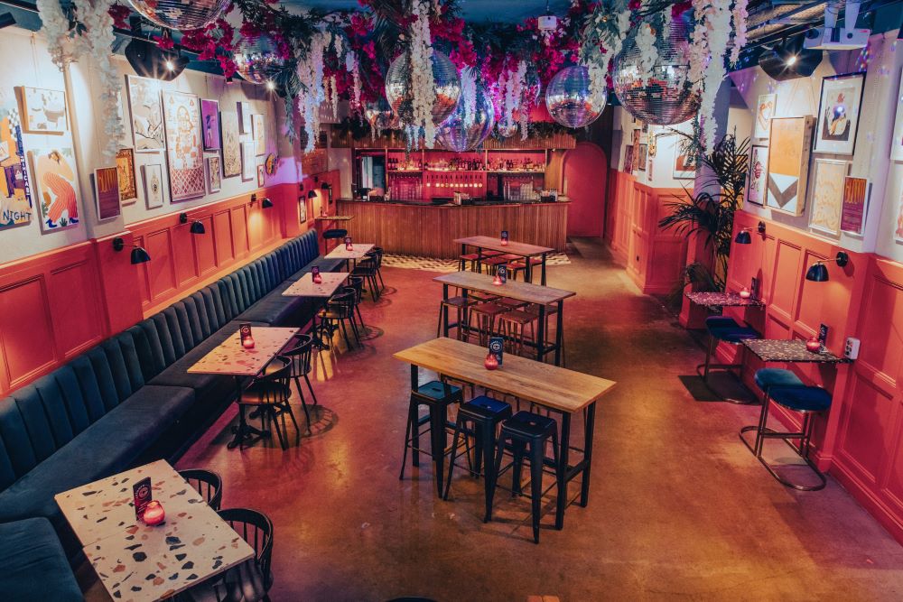 The Main Bar at Colours Hoxton is ideal for various occasions, from sophisticated corporate events to quirky Christmas parties. As part of our private venue hire in Hoxton, London package, the Main Bar offers pre-orderable beers, wines, cocktails, and bespoke food and drink packages. Elevate your event with in-house entertainment like DJs, drag acts, and even roaming circus performers.