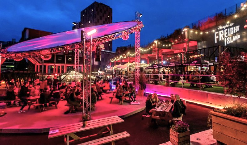 Freight Island. Outdoor and covered food, drink and entertainment experience. An inspiring urban landscape rebuilt and rethought around a visionary food market, a unique selection of bars (a huge main bar, craft beer taproom, neighbourhood cocktail bar and intimate wine bar), inventive culture spaces and intimate seating.