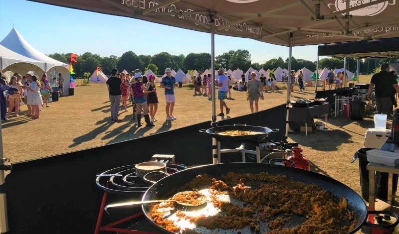 In one field, we set up a tented village, with loos and showers for 300 people. In the other field, we set up a marquee with a covered outdoor bar and outdoor space to house a food theatre.