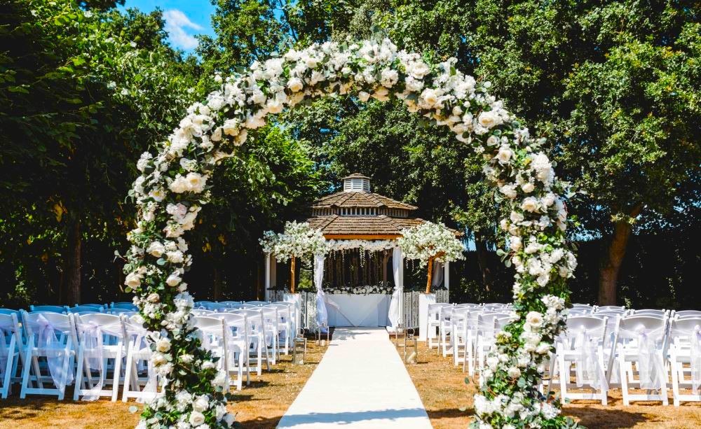 Set in picturesque gardens which provide a beautifully tranquil setting, Greenwoods is one of the leading wedding venues in Essex, England. Stunning interiors, delicious food and attentive service make Greenwoods Hotel award-winning and the ideal choice for your big day. Nestled within the impressive grounds is our Garden Gazebo, the perfect setting for a magical outdoor ceremony.