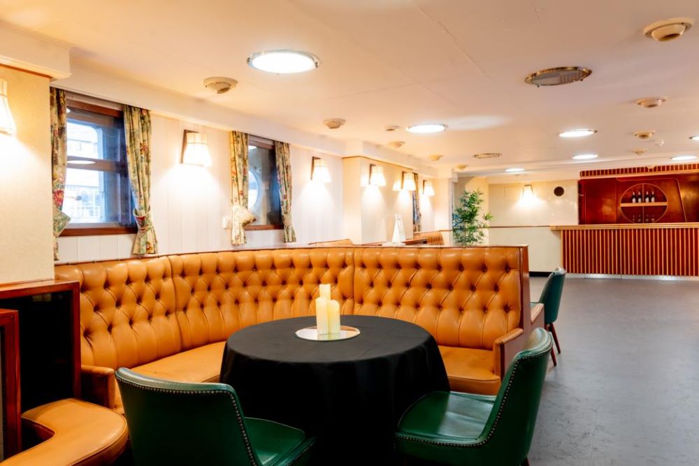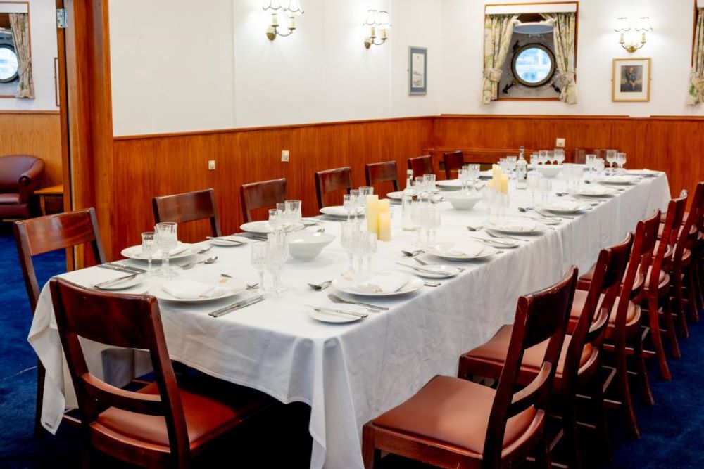 Hire The Morgan Giles Room, with extraordinary 1950s decor and a versatile environment suitable for hosting a variety of events in London. This is one of the finer spots aboard the HMS Belfast. This room once served as an Officers’ mess and so includes a bar. Named after the Admiral who served in her and later was responsible for ensuring the ship was saved from the scrap yard.