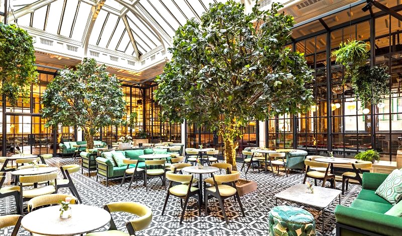 A stunning indoor-outdoor space with an original glass atrium that pours natural daylight into the leafy heart of the hotel. Every detail, from the furniture to the verdant romantic scheme, has been thoughtfully considered to create an enchanting space.