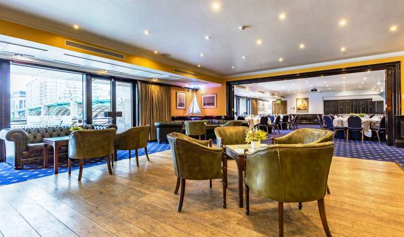 The Club Room is a delightful, airy space overlooking the river with large windows and doors which can be opened to allow direct access to the Thames Path. Leather upholstery, distinctive oil paintings, and historical sailing mementos add to the nautical ambience of the Club.