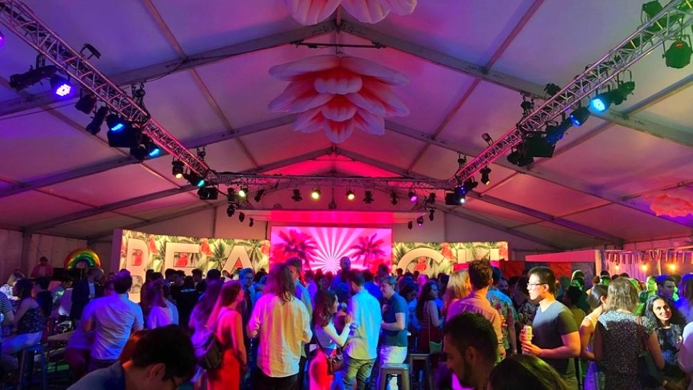 Walking in from the Southbank, check in your belongings at the cloakroom shack and head to our 80ft carpeted marquee, fully fitted with 2 tropical themed sponsored bars to service all your needs.