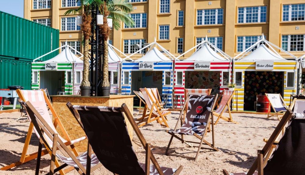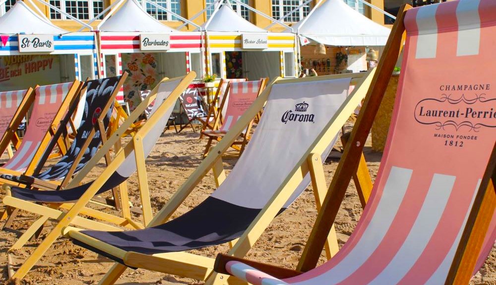 At The Beach you can to sit back and unwind on a deckchair or in a beach hut after treating yourself to a glass of champagne from our sponsored Laurent Perrier bar or a chilled beer from our unique Container Bar.