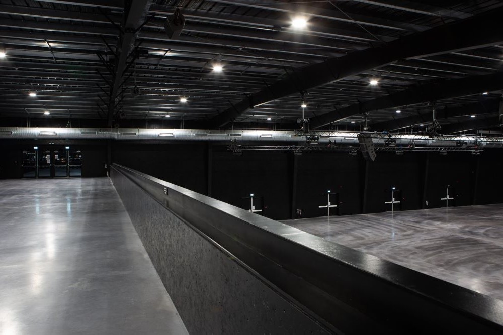 Black walls, polished concrete floors and clear sight lines allow for truly immersive experiences. The space can be divided into smaller spaces or kept open making it ideal for conferences, large-scale performances, award ceremonies, dinners and exhibitions.