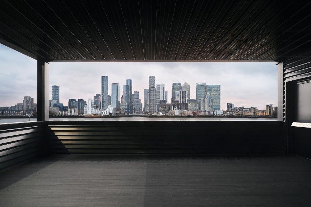 From the floor-to-ceiling riverside views of Space 1, to the fully configurable ‘black box’ of Space 2, the building’s architecture reflects the industrial history of Greenwich. Built in 2019, the steel structure allows for vast and customisable use of the internal spaces, blending function with an uncompromisingly contemporary aesthetic of patinated steel, black OSB walls and polished concrete floors.