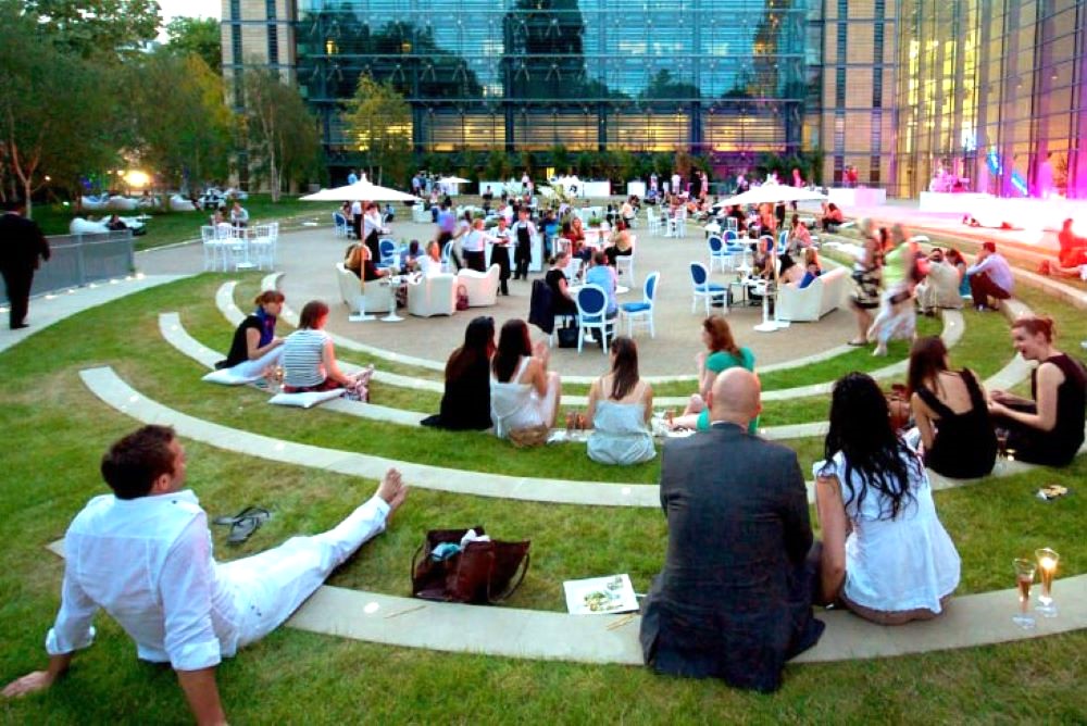The courtyard provides a tranquil setting for a party or drinks reception with the additional space of the atrium inside.