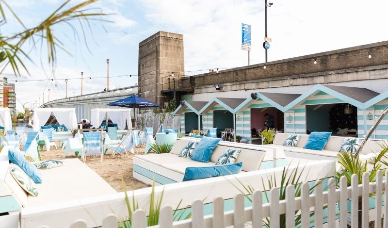 Neverland is transformed into The Fulham Beach Club – London’s favourite summer venue from May until September. Imagine all-white parties, toes in the sand dancing, chilling in a cabana and partying under the sun. A paradise of white sand, day beds, pastel beach huts, swings and palm trees