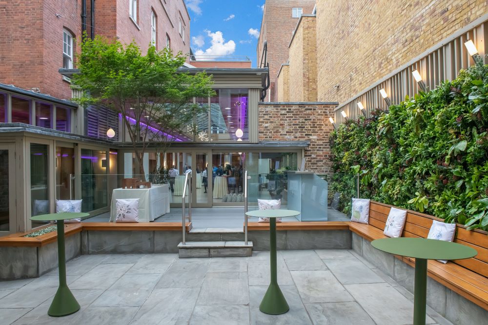 In spring and summer, our delightful courtyard is an ideal place to escape the buzz of the city and relax with clients or colleagues. It is an oasis in the heart of London. The courtyard garden features a delightful lush green ‘living wall’ installation and a water fixture. It is the ideal spot for alfresco entertaining