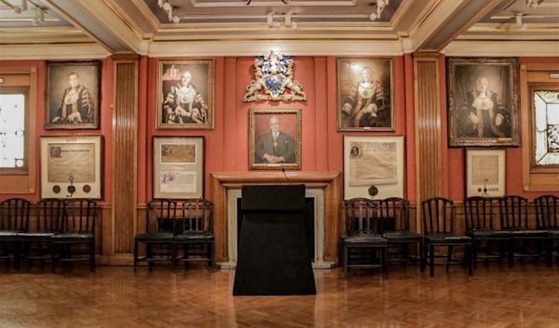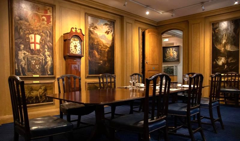 The walls and displays of the Court Room chronicle the fascinating history of the Painter-Stainers’ Livery Company with a wide collection of historical portraits. Interconnecting doors slide back to reveal a more contemporary collection of art on the walls of the Court Dining Room. Together these Rooms present an ideal setting for pre-dinner drinks or for professional business meetings, presentations or smaller lunches and dinner parties.
