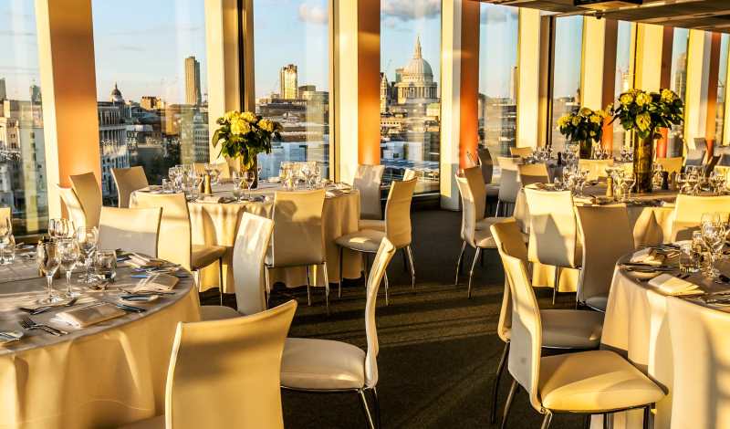 Aptly named, Sunset is the ideal space in the building to watch the sun sink into the Thames at the end of the day. This modern and relaxed space, which is available exclusively for afternoon and evening hire, features a large bar in the centre, decorated with the vibrant red, orange and yellows.