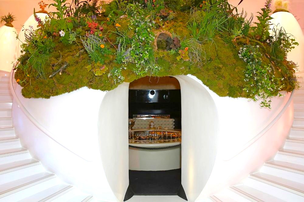 The Lecture Room & Library is sketch’s gastronomic restaurant. Designed by Gabhan O’Keefe, The salon is decorated in shades of orange, with richly upholstered armchairs and extraordinary chandeliers. The design is opulent, with ivory walls of silver thread, ornate plasterwork ceiling, and crystal-encrusted bathrooms.