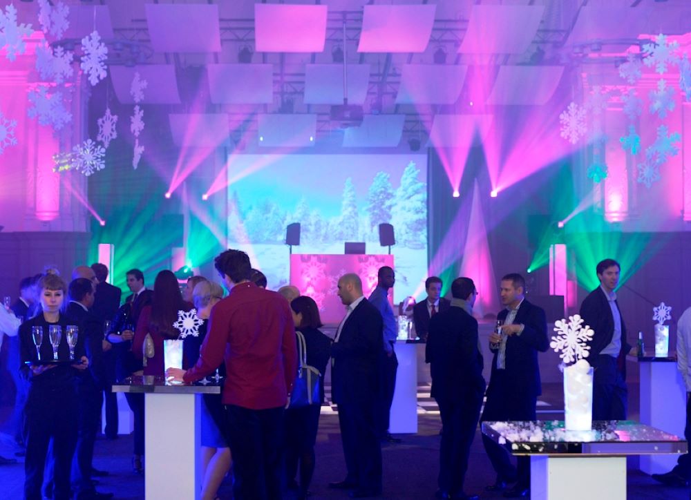 We turned a Grade II-listed ballroom in the City of London into a Snow Ballroom for 500 guests. On arrival, they were greeted by ice Kings and Queens serving frosty cocktails.