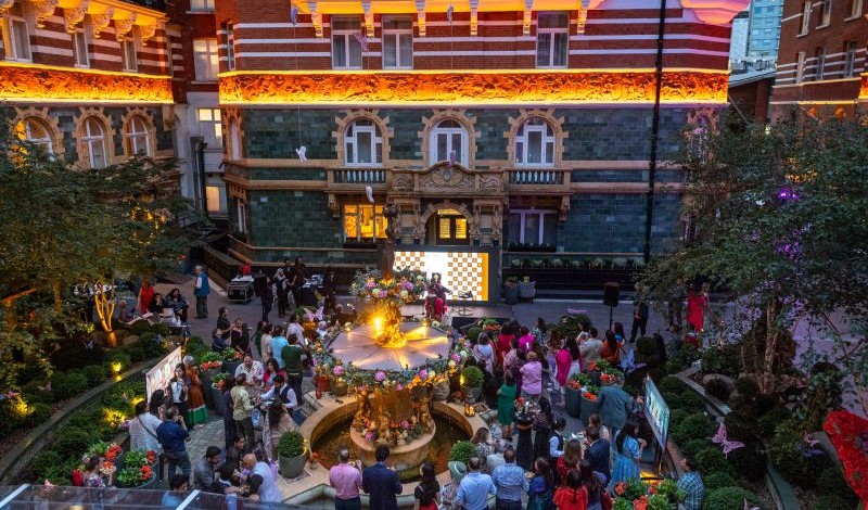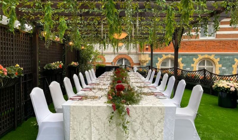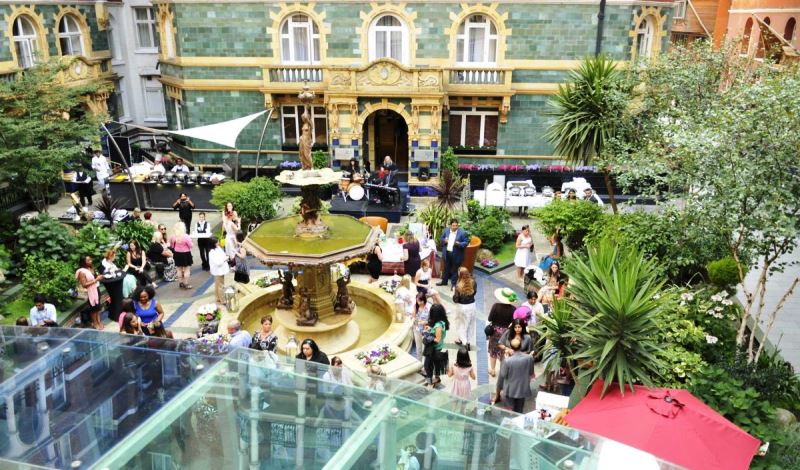 The Courtyard is a tranquil and leafy outdoor space with a tiered fountain and a terrace. A plethora of pastel colours contrast with verdant greens, whilst the tiered central fountain provides a melodic backdrop to al-fresco dining. A hidden gem in central London offering a versatile space for weddings, receptions, private parties, corporate launches, product launches, barbeque, summer party, themed events, hospitality evenings, unique events and live music entertainment.