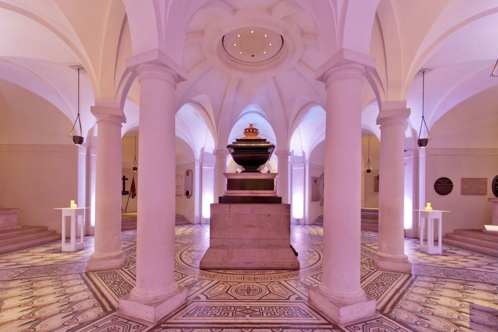 Nestled in the heart of St Paul’s Cathedral’s crypt, the Nelson Chamber is a striking rotunda space centred around the tomb of Admiral Lord Nelson—its proud and poignant focal point. With its intricate mosaic-tiled floor and breathtaking vaulted ceiling, this elegant chamber offers a setting of quiet majesty and timeless significance.