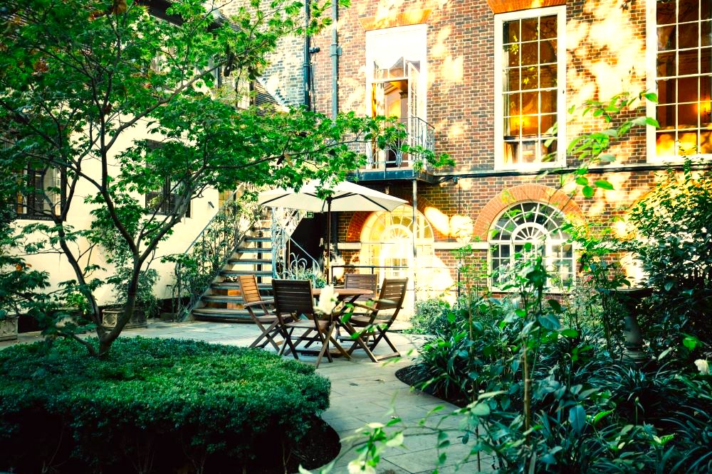 The beautiful paved and landscaped Urban Garden is a totally private and secluded space, a hidden treasure in the heart of the City of London. Connected by a decorative wrought iron staircase to the Court Room but with easy access to the Main Hall and Stock Room, the Garden is available to all clients who are hiring the Hall.