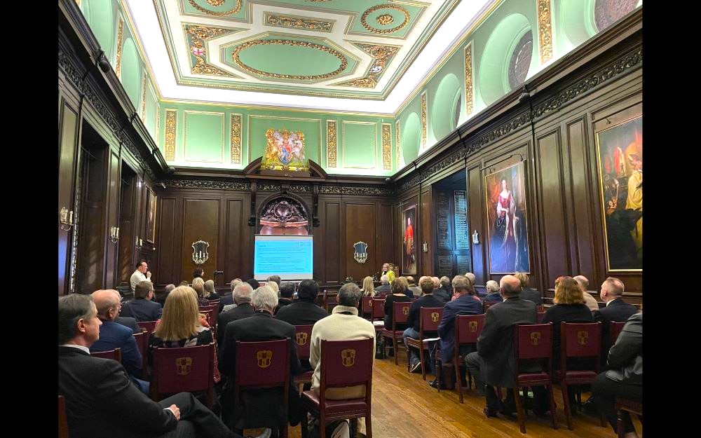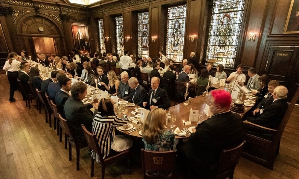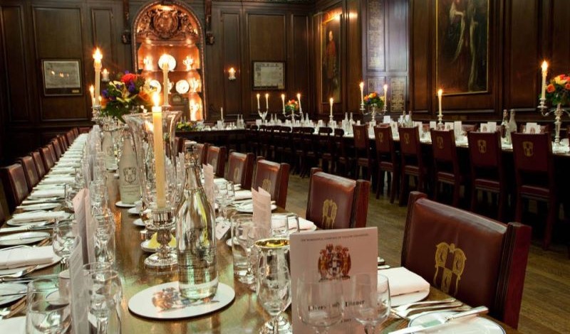 The elegant ceiling of this beautiful Hall dates from 1868, when the original roof timbers were replaced. Heraldic stained glass and fine paintings, combined with fine oak panelling, create the perfect atmosphere for Livery dinners or, indeed, any special occasion.