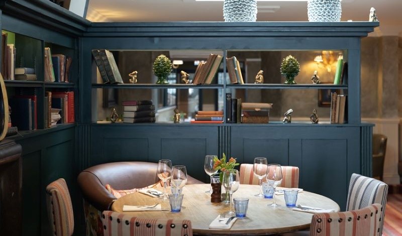 Stepping inside The Builders Arms feels a bit like visiting your wealthy friend’s country pile, thanks to the tasteful dining room’s mix of upholstered chairs, wooden tables, colourful fabrics and shelves piled high with books and curious trinkets