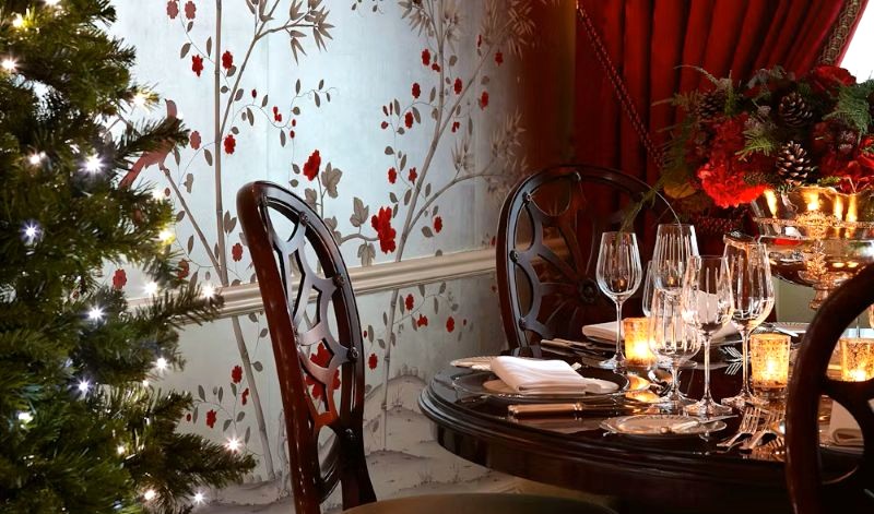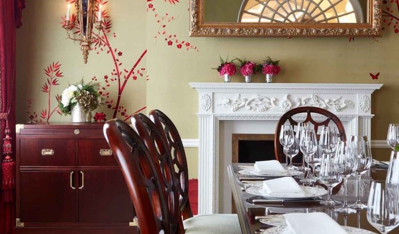The Silver Room also features stunning wallpaper by Fromental which has been part embroidered on a silver leaf background with hand-painted Chinoiserie design in red. As with the Drawing Room, the curtain fabrics are designed by Gainsborough Silks which perfectly complement the colour of the room. Located close to The Dining Room, guests can enjoy a lavish Michelin-starred lunch or dinner under the sparkle of our Edwardian chandelier.