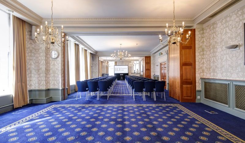 The David Lloyd George Room was originally the council chamber for the Law Society and is perfect for presentations and meetings. It is also licensed for weddings and is delightful for intimate ceremonies and dinners. Flooded with daylight by the double height windows, this opulent space, adorned with grand chandeliers, silk curtains, oak panelling and an elegant gold and blue colour scheme, has the added benefit of an ante room with bar and catering area, making this a fully private area that also boasts the fact that it is soundproofed throughout.