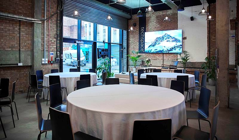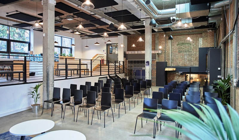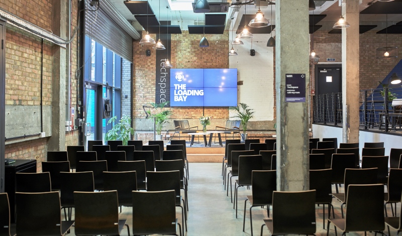 The Loading Bay space offers an industrial yet modern look with a double-height ceiling and lots of natural light. Panels pitch events, networking meet-ups and presentations are supported by high spec AV throughout, including wired and wireless casting options, 6 microphones, record out capability and a SONOS system you can control. Half-day and full-day bookings available, weekdays only.