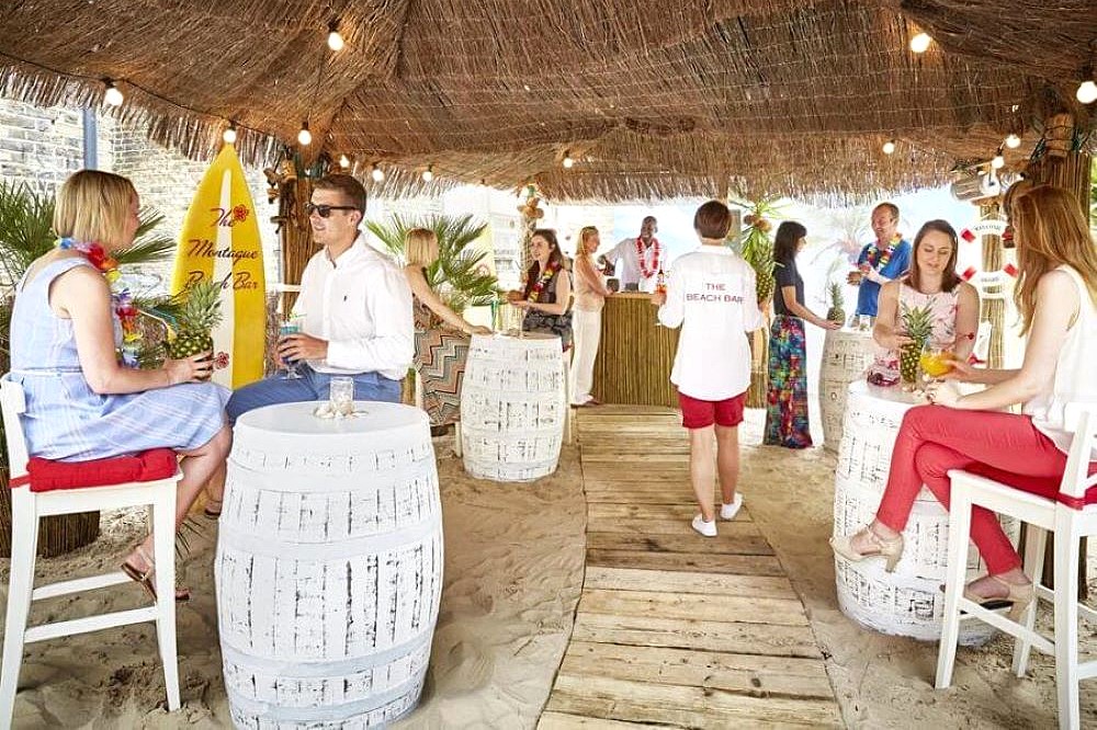 Experience an unforgettable summer party at the award-winning Beach Bar at The Montague on the Gardens. With real sand, a beach-hut style thatched roof, tropical palm trees, and a beautiful beach backdrop, you’ll feel like you’re basking in the Bahamas, right in the heart of London. Our chef will get you into the summertime spirit with a delicious range of BBQ options