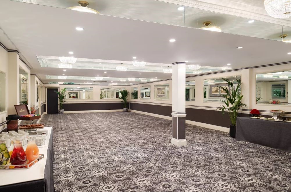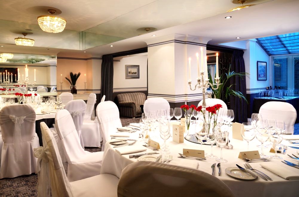 The Woburn Suite has natural light and is fully air-conditioned with a small conservatory area on the side. It is located on the lower ground floor and is fully accessible for guests with mobility limitations. With a small conservatory area allowing natural daylight and a cosy seating area, The Woburn Suite serves as an ideal venue for both meetings or formal dinners.