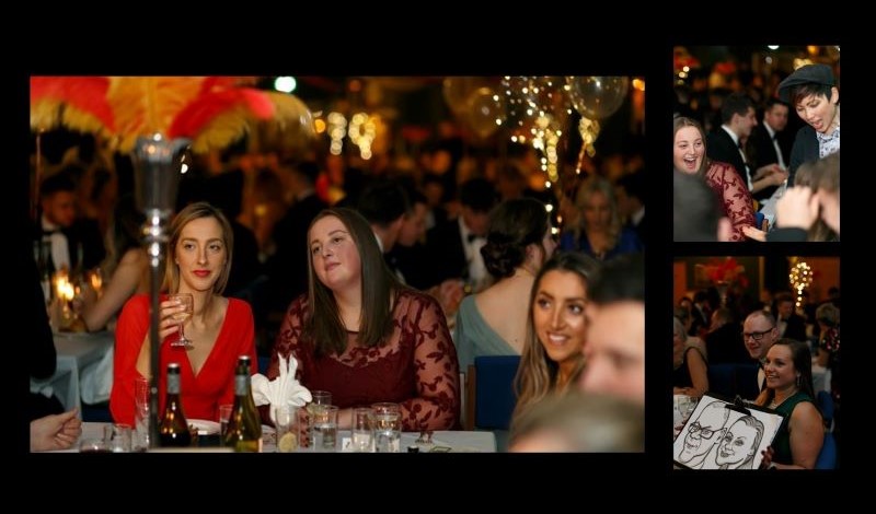 During a delicious carvery, our scallywags (magician and caricaturist) did rounds of the tables to keep everyone amused and surprised. The dining tables surrounded the central Circus Ring where the Vintage Circus wowed their audience with dynamic and scary performances. These included a Contortionist, LED hoopist and Lolly pop aerialist all introduced by a sword swallowing Ring Master!
