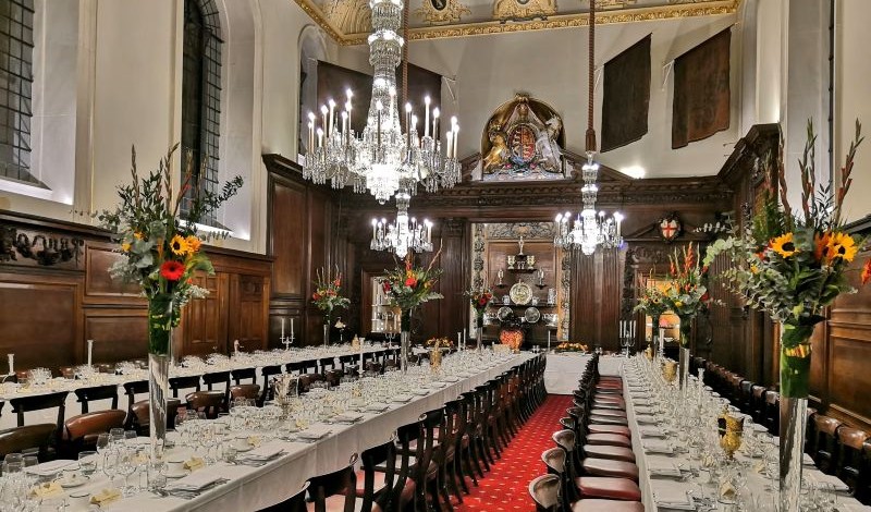 The Livery Hall is the centrepiece of Vintners’ Hall providing high ceilings, grand chandeliers, intricately carved wood panelling and gild cornices. All combined to create a fitting sense of majesty, echoed by the magnificent 17th century staircase that leads to the Conservatory and Drawing Room.